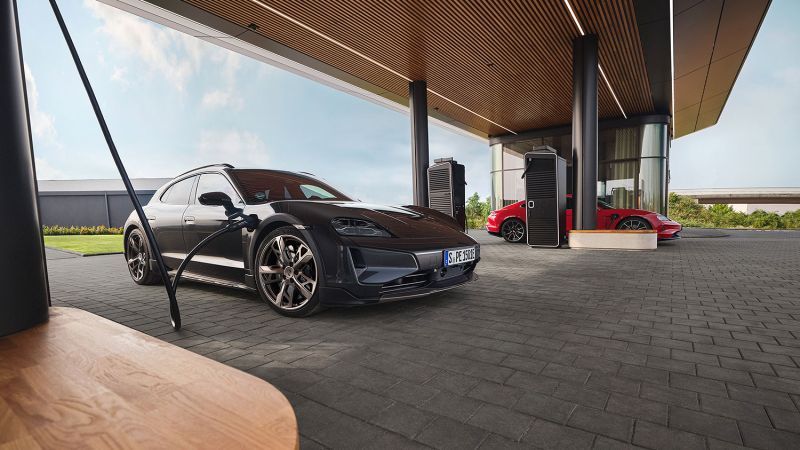 Unterwegs bietet der Porsche Charging Service Plus den Zugriff auf Ladepunkte verschiedener Anbieter. Und das weltweit. Die zentrale Abrechnung erfolgt direkt über Porsche. Für Neukunden entfällt übrigens bis zu drei Jahre lang die Grundgebühr. Stand heute stehen in Deutschland, Österreich und der Schweiz ca. 200.000 Ladepunkte zur Verfügung. In ganz Europa sind es mittlerweile mehr als 800.000 Ladepunkte in 24 Ländern. Ein weiteres Nachhaltigkeits-Plus: Der Ladesäulen-Filter „Grüner Strom“ zeigt an, welche Ladesäulen für den Ladevorgang entsprechend zertifizierten Strom verwenden. Darüber hinaus gibt es das Porsche Turbo Charging – von Porsche initiierte Schnellladestationen. Diese laden mit beeindruckender 800-Volt Technologie und sind beispielsweise in Porsche-Zentren zu finden. Zudem treibt Porsche die Errichtung einer weltweiten Schnellladeinfrastruktur voran – teilweise gemeinsam mit Partnern. So ist Porsche über das Joint Venture IONITY europaweit an fast 700 Schnellladeparks beteiligt, die mit bis zu 350 kW Ladeleistung pro Ladepunkt arbeiten.